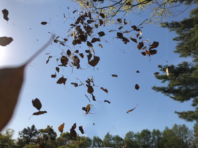 タイトル「空に舞う落ち葉」
