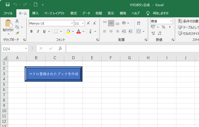 以上、新規ブックを作成しマクロが登録されたボタンを設置する方法でした。