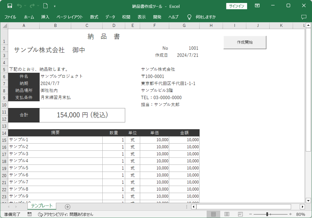 今回は実装しませんでしたが、最後に"テンプレート"シートの入力項目をリセットしてもいいかもしれませんね。その場合、以下を追加すればOKです。
