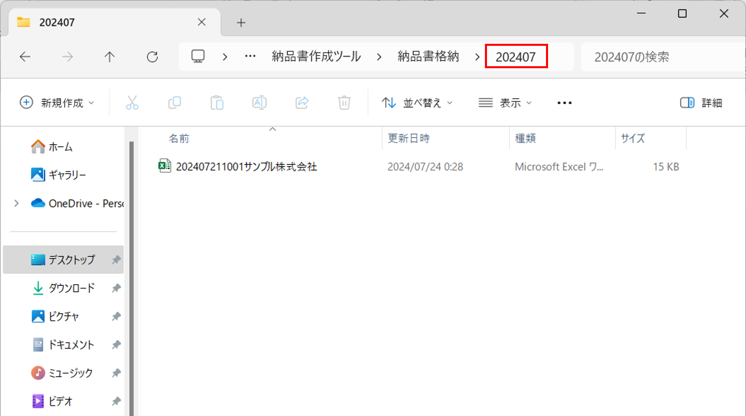 納品書格納フォルダは作成月でフォルダを作成、既に存在する場合は保存のみ実行。
