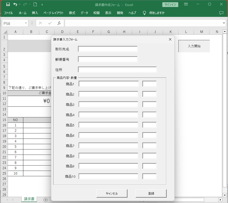 ユーザーフォームを使用した入力フォームの作り方