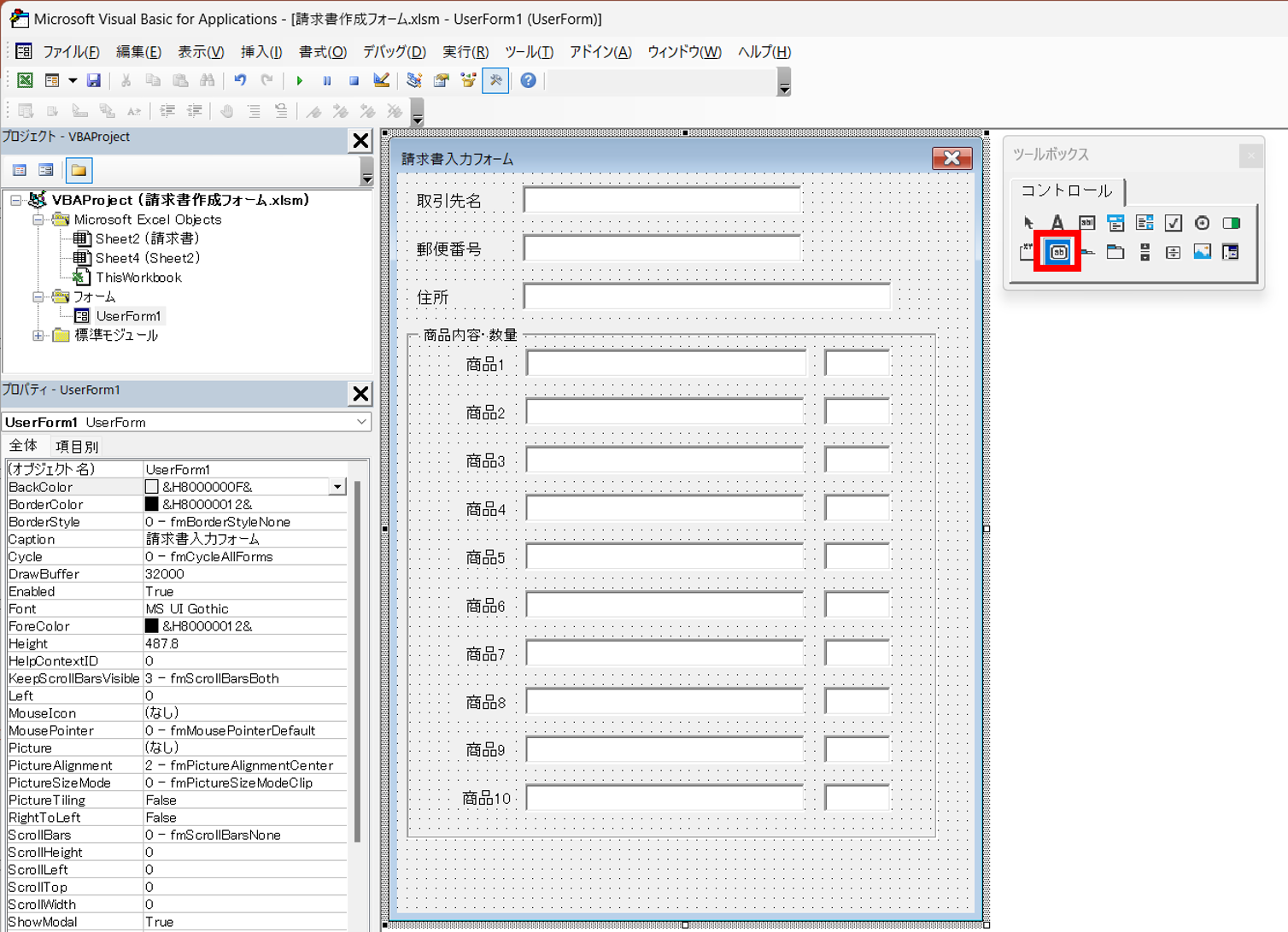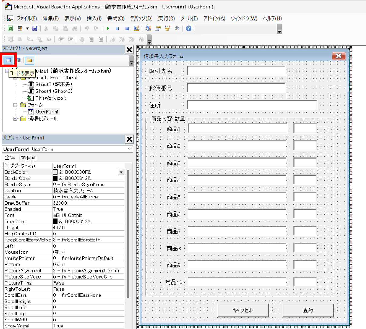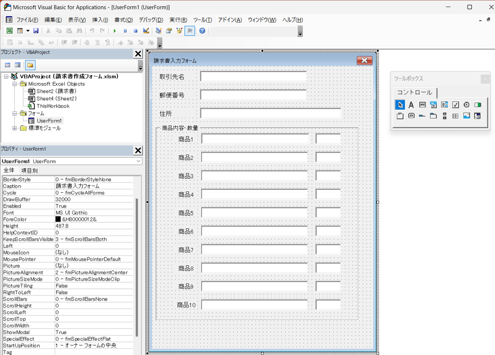 ユーザーフォームの作り方