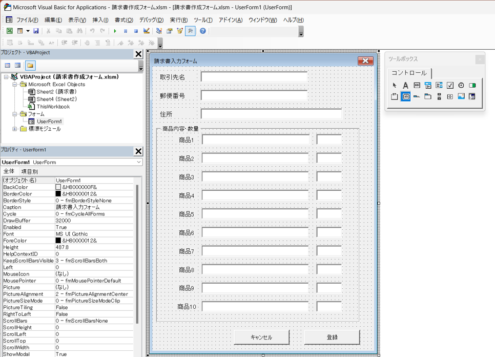 まずはユーザーフォームの作り方を解説したいと思います。