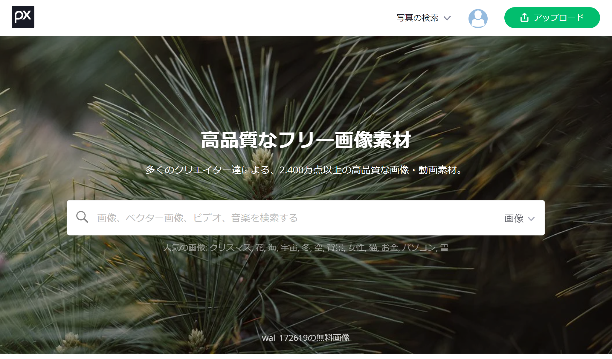 無料ダウンロードできるのは画像はもちろん、イラストや動画など、数千万という素材の中からダウンロードが可能となっている、誰もが知っている世界的に有名なサイトです。