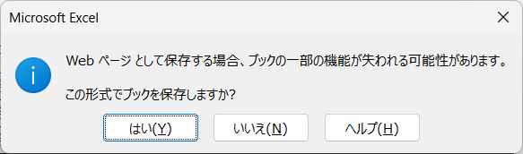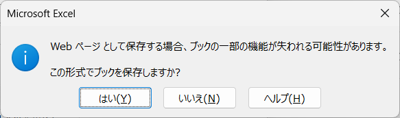 ※「はい」クリック後、元々のファイルがExcelファイルのまま表示されたり、WEBページをExcelで開いた状態で表示されたり、バージョン?によって違うようです。