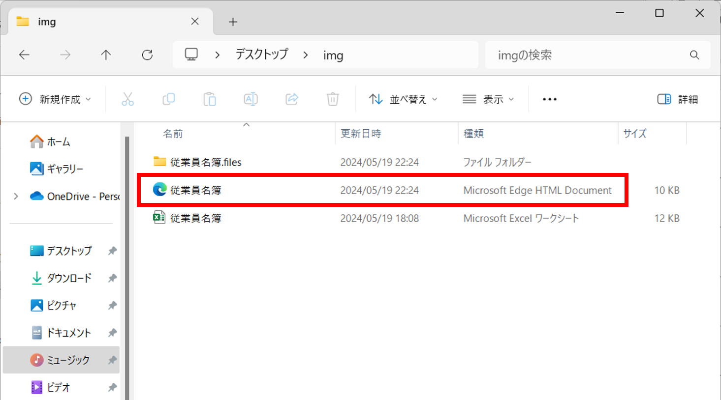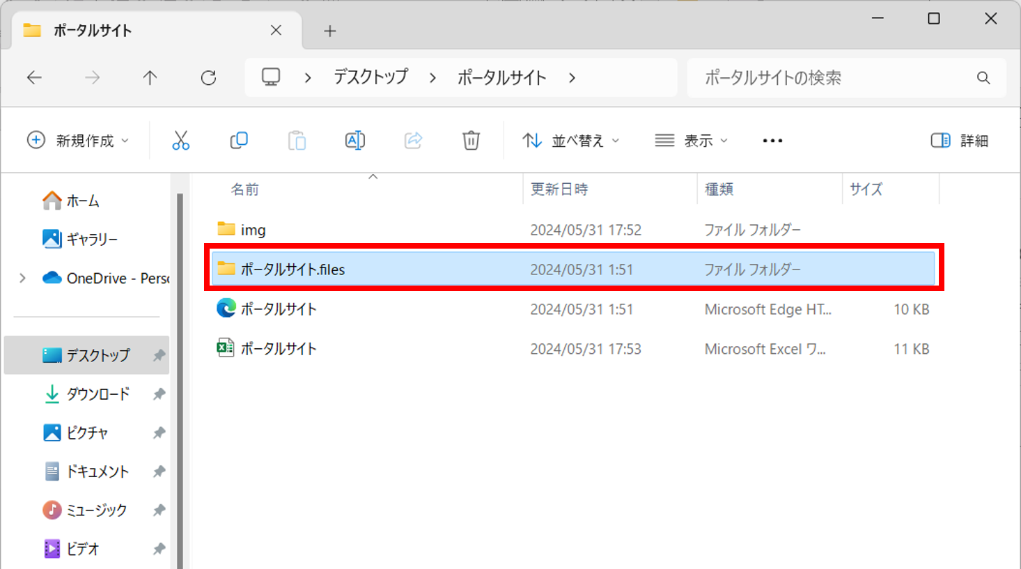 ※拡張子が「.files」のファイルフォルダを削除してしまうと、htmファイルも消えてしまうためご注意ください。WEBページの部品が入っているようなフォルダです。