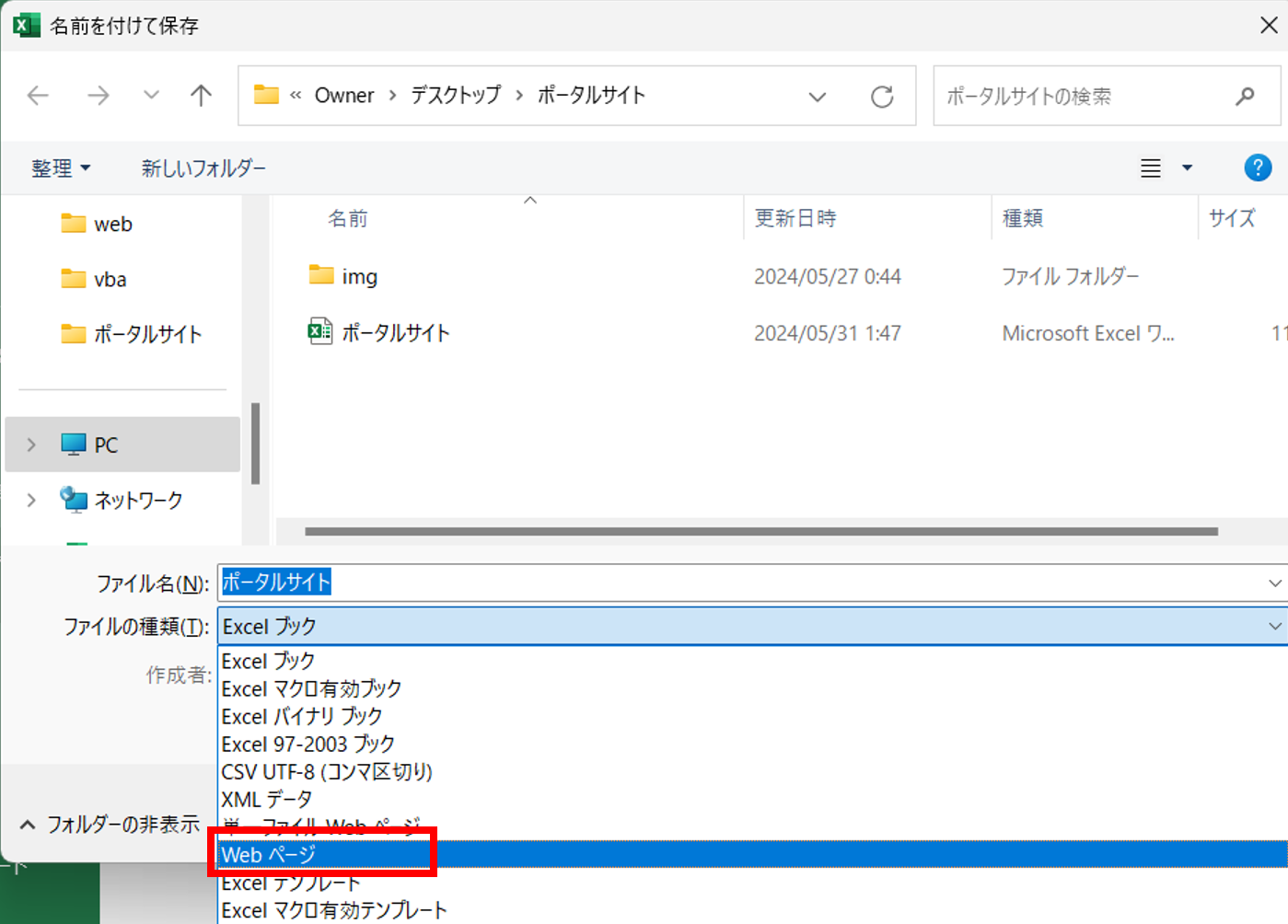 WEBページは通常「.html」ですが、ExcelをWEBページで保存すると「.htm」となります。