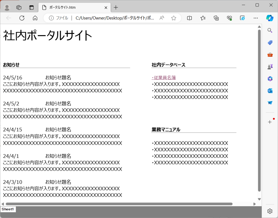 以上、ExcelからWEBページを作る方法、またポータルサイトの作り方でした。